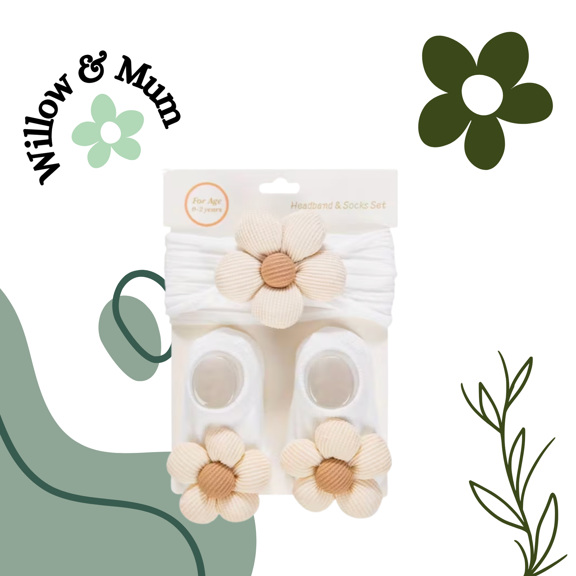 White | Flower Head Band & Socks